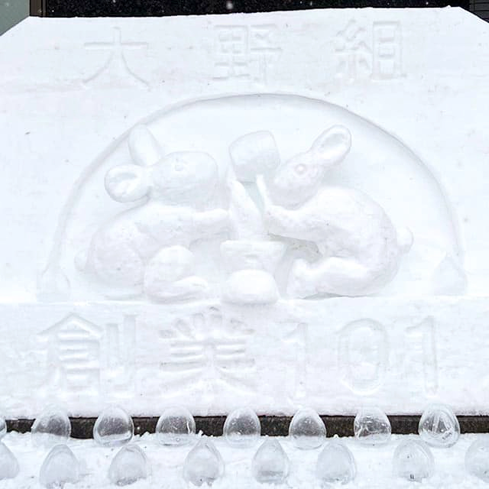 いつも弊社HPをご覧いただき、誠にありがとうございます。 近年まれにみる最強冬将軍も、退散の時期を迎ました。 いよいよ今週末から、名寄市の最大のイベント「雪室日本一フェスティバル」が始まります。 このお祭りを、もっと楽しんでゆこうと会社の前に「創業101」と題して社員みんなで雪像の作成をしました。 そしてこの雪像はミニ雪像コンテストで特別賞を頂けました。ありがとうございました。 今夜、午後5時半に点灯式を行いイベントを、盛り上げる予定です。 是非皆様見に来てください。 ■ 点灯式・・・2月7日(火)17時30分より